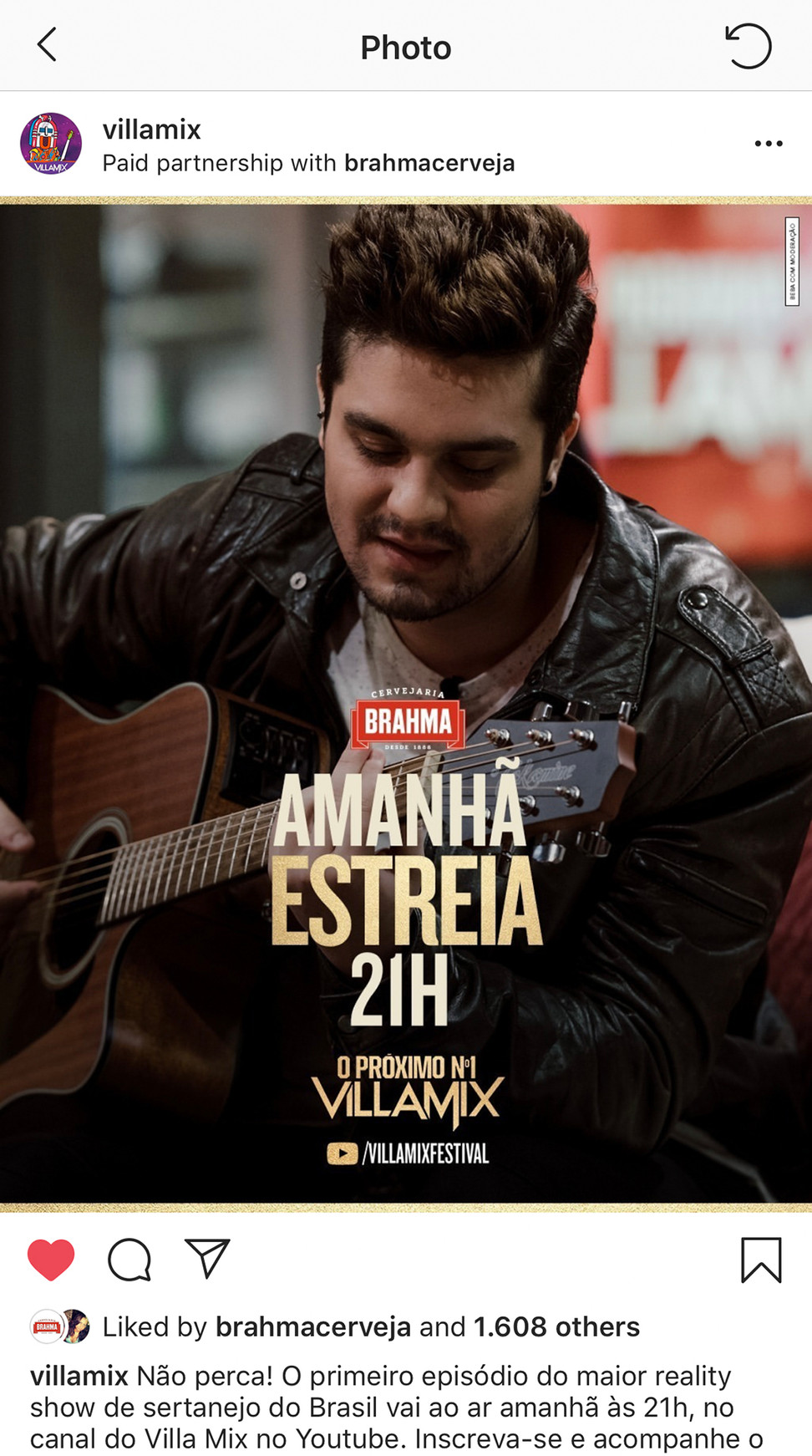 Com produção da Endemol Shine Brasil e Google, o VillaMix Festival e a Brahma lançaram o reality show de música sertaneja intitulado O Próximo Nº1 VillaMix. Comandado pelo cantor Luan Santanas e gravado nos estúdios do Youtube no Rio de Janeiro, o programa tem como objetivo escolher o novo nome que irá trilhar o caminho do sucesso e se apresentar nos principais festivais sertanejos do país.